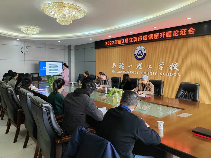 3月28日下午,马鞍山市2022年度立项教育科学规划课题开题论证会在马鞍山理工学校举行。马鞍山市教科院李骏老师、龙兆良老师、市工业学校副校长黄云林和马鞍山理工学校胡常海老师作为专家应邀到场。