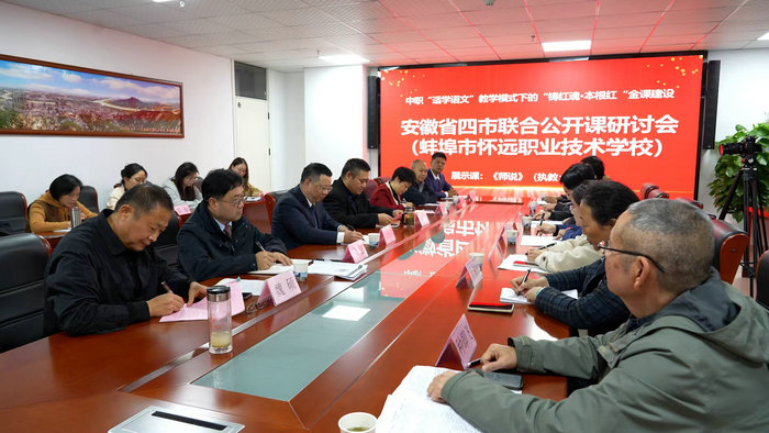 为充分发挥安徽省中职“适学语文”项目组示范、引领、辐射作用,促进省内地市教师间教学经验交流,提升教师课堂教学和理论水平,10月28日,马鞍山、芜湖、黄山、蚌埠四市联合研修活动在蚌埠市怀远职业技术学校举办。马鞍山理工学校徐鸣、吴海红等5位教师作为马鞍山市唯一受邀中职学校代表参会,与四市同行共研“适学语文”教学模式下的“铸红魂·本根红”金课建设。