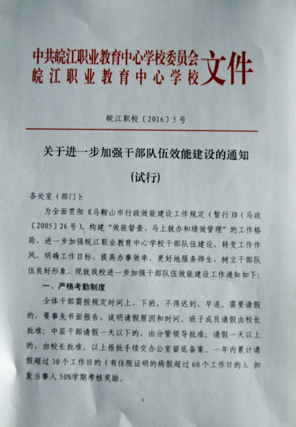 关于进一步加强干部队伍效能建设的通知(试行)