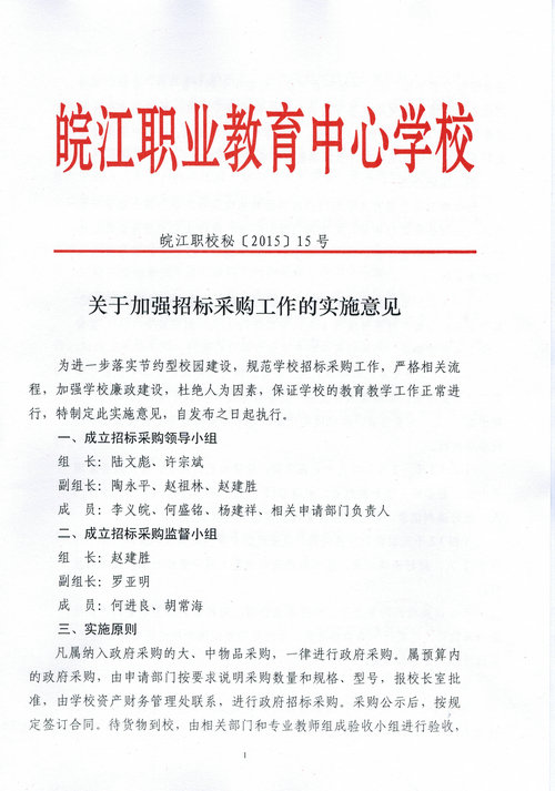 关于加强招标采购工作的实施意见