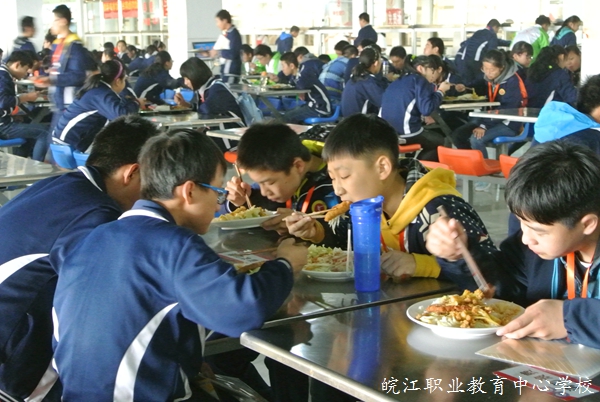 听完胡老师的报告,同学们参观了汽修、电子、计算机实践基地,随后来到食堂,吃上了师傅们精心准备的丰盛午餐。