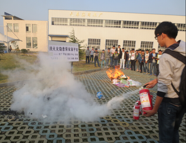 为了做好本次送消防进车间活动,学校安保处事前就具体事项与汽修专业部部长孙五一老师联系,取得了汽修部的大力支持和配合。 11月6日下午3点35分,汪秀泉和胡志强两位老师带领学生迅速从实训楼撤离,用时仅2分钟即到达实训楼门前的小停车场集合。清点完人数后,安保处张业顺老师对同学们的疏散情况进行了点评。之后安保处冯楠老师向大家讲解了干粉灭火器的使用方法。在工作人员事先准备好的火堆点燃以后,冯楠老师给同学们做了干粉灭火器灭火的示范操作。在接下来的实际灭火环节中,同学们兴致很高,踊跃参加。这次演练生动而有趣,寓教于乐,真正做到了理论与实际结合,给参加本次活动的每一位同学留下了深刻的印象。