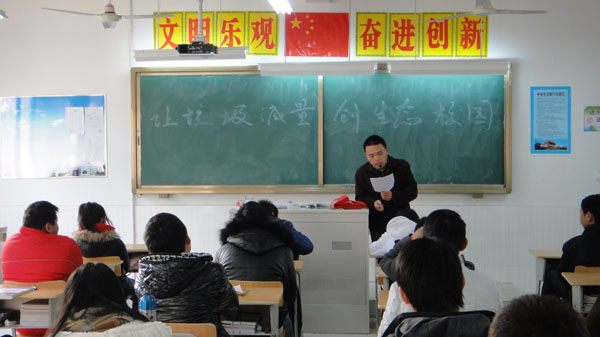 为增强学生环保和节约意识,根据市环保局和教育局要求,由校资财处牵头,学生处安排的“让垃圾减量,创生态校园”主题班会在校各班级如期举行。
