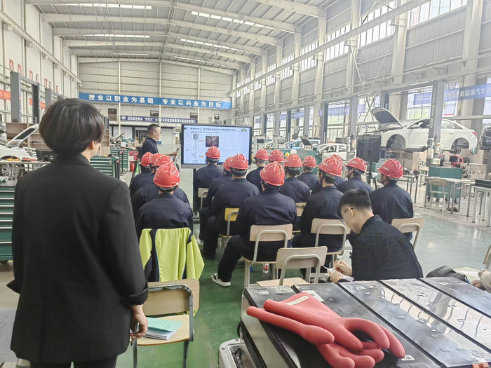 在该校汽车专业部,刘旭老师就参赛作品的教学实施报告和教案设计意图,向两位老师作了汇报。随后,两位老师观摩了大赛参赛课程《动力电池管理系统故障诊断》现场课。课后,两位老师与刘旭老师进行了深入交流与沟通,对场地布置、拍摄机位架设和教学流程等方面作了现场指导。团队参赛人员表示,两位老师的指导非常有针对性和指导性,对进一步优化课程设计、提高作品质量起到看了很好的促进作用。